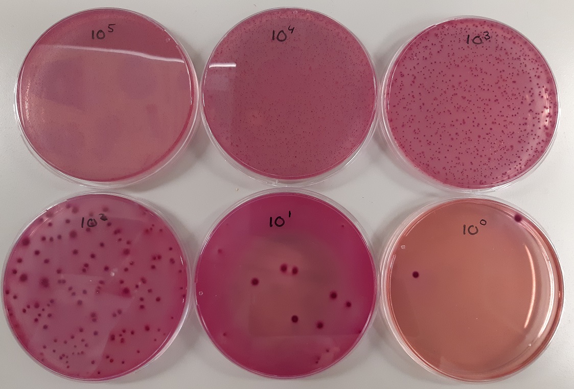 mL verdund monster met bacteriecellen aangebracht, de verdunningsfactor is op iedere voedingsbodem verschillend. Hoe meer verdund, hoe minder bacteriekolonies er ontstaan. Zie onderstaande afbeelding.